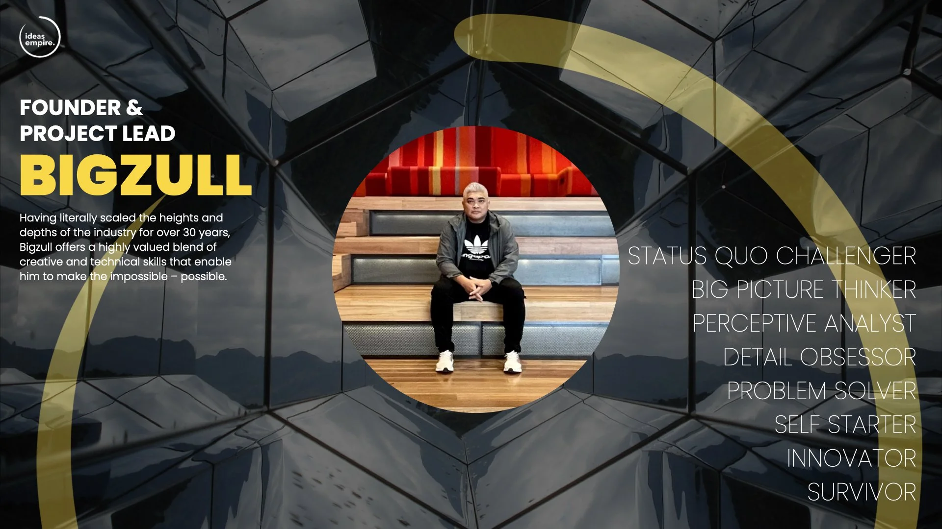 Ideas Empire was started by BigZull – a man known for his innovative solutions and creative thinking. Having quite literally scaled the heights and depths of the industry for over 30 years, BigZull offers a highly valued blend of creative and technical skills. A big-picture thinker when needed, and detail-obsessed when necessary, BigZull knows how to make the impossible - possible.